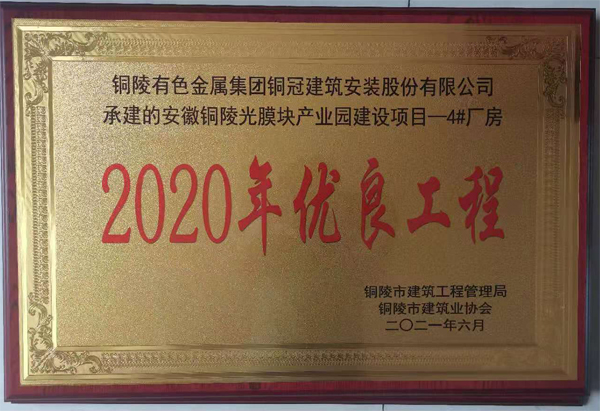 • 銅陵市2020年優良工程(安徽銅陵光膜塊...
