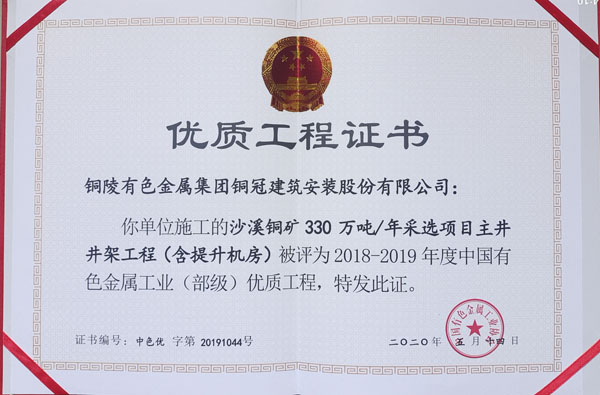 • 沙溪銅礦采選項目主井井架工程(部優)